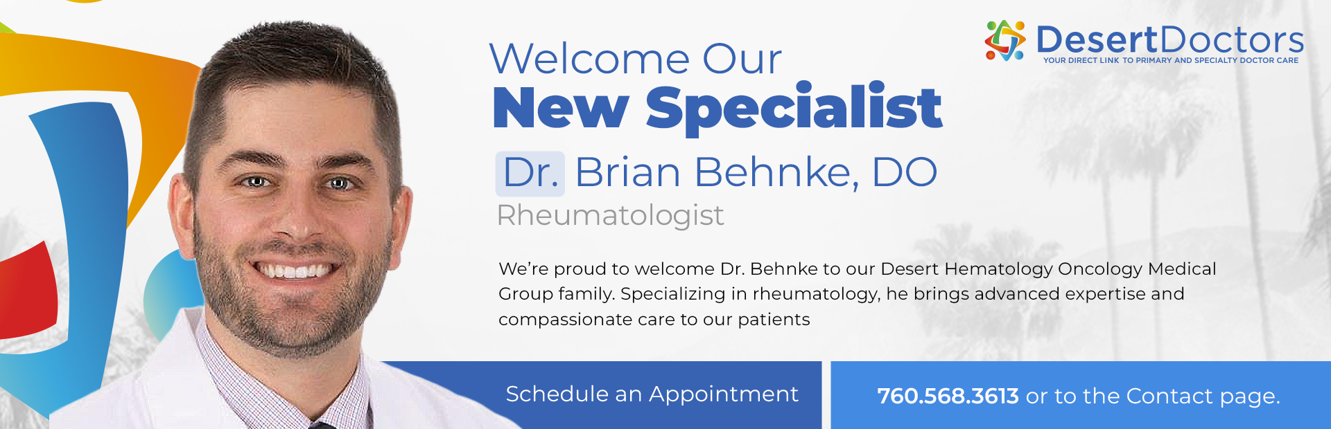 Provider ApplicationThe independent physicians and specialists at Desert Doctors work diligently to bring high-quality, affordable healthcare directly to Coachella Valley patients. For more information or to speak with a call advisor, contact us at 760-232-4646 or submit your information online.